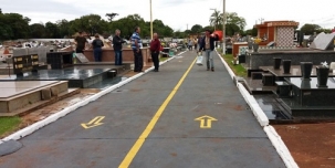 No Dia de Finados, de praxe, todas as prefeituras (ou quase todas) dão uma ajeitada no Cemtiério Municipal. Umas capricham mais, outras menos. Em Campina da Lagoa teve até sinalização para o trânsito dos visiantes". Repare nas setas pintadas no chão. Tá pensando o quê!...