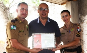 O vereador Valdir Americano, de Engenheiro Beltrão, recebeu certificado do 3º Pelotão do Batalhão de Patrulha Escolar Comunitária. Motivo? Reconhecimento aos esforços para a continuidade do Programa Educacional de Prevenção às Drogas (Proerd) na região. O vereador, que a partir de janeiro assume a presidência da Acamdoze, é policial militar aposentado.