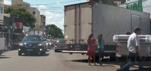 Rua Harrison José Borges, centro de Campo Mourão, na tarde desta quinta-feira. Quem desce tem que esperar quem sobe...