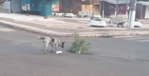 "Virou moda tapar buraco ecologicamente em Iretama. Esse é no calçadão central. É o espírito de Natal. Até o cachoro foi conferir o que era".