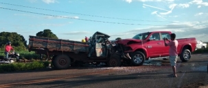 Duas camionetes bateram de frente e um homem morreu no local, em Goioerê.