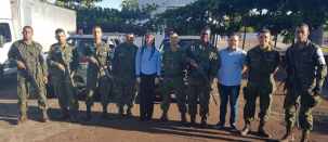 O que é isso? Forças Armadas (e bem armadas!) em Campo Mourão? Sim, mas calma, que não foi nenhuma operação de guerra. São integrantes da Marinha, que estiveram nesta quinta-feira na VRI. A indústria de placas eletrônicas é fornecedora da Marinha do Brasil. Nesta quinta foi dia de entrega de encomenda, que saiu devidamente escoltada da empresa, com direito a uma fechadinha na rodovia e tudo.