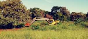 Máquina começa trabalho no terreno onde será construída a filial da Havan em Campo Mourão. Fica na perimetral Tancredo Neves, perto do Muffato. Segunda a loja, depois que a obra foi iniciada, fica pronta em três meses.