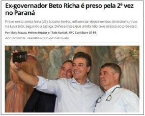 Olha a foto que o portal G-1 usou nesta sexta-feira para ilustrar que o ex-governador Beto Richa tinha sido preso em Curitiba. Sim, mostra Richa com o prefeito de Peabiru, Júlio Frare, e com o ex-vereador Botinha. O portal fez várias atualizações durante o dia e trocou a foto, mas não faltou quem tivesse feito um "printezinho básico"...