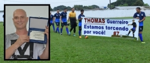 Luiziana venceu Rancho Alegre do Oeste por 2 a 0, domingo, na primeira rodada da 2ª Copa Comcam Sicredi. O time da casa entrou em campo com uma faixa em homenagem ao volante Thomas Bognar, que está afastado da equipe devido ao tratamento contra a leucemia. O atleta, que já atuou no profissional, também recebeu uma placa dos colegas. "Estamos esperando pela sua volta ao futebol", destaca o placa.