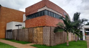 O conserto da fachada do Teatro Municipal ainda não saiu. Parte do revestimento da fachada caiu em maio do ano passado. Desde então, por questão de segurança, um tapume foi colocado local. Quase um ano depois, o tapume já se desgastou e a obra ainda não saiu. Logo será preciso licitar a reforma do tapume...