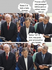 Os cliques são de sábado, durante a sessão da Câmara de Campo Mourão que entegou mais uma moção ao pastor José Anunciaçã dos Santos. Foi na igreja Assembleia de Deus. O ex-prefeito Nelson Tureck e o prefeito Tauillo Tezelli, velhos adversários políticos, ficaram lado a lado. O vereador-autor, Edilson Martins também. Ao fundo, quem aparece é´o ex-vereador Salvador Martins, pai de Edilson...