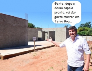 O clic é de Terra Boa, onde o prefeito Valter Peres foi conferir a construção da nova capela mortuária. A obra de 311 m2 fica em área anexa ao Cemitério Municipal. Serão 14 ambientes, sendo três salas para velórios. O investimento é de R$ 739,2 mil. Segundo Peres, a obra é necessária porque a atual capela é antiga e tem estrutura precária.