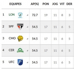 Agora Campo Mourão, São Paulo, Cerrado e Unifacisa têm o mesmo aproveitamento - 54,5%.