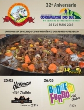 O prato típico será servido dia 26 de maio, seguido de show com o Bonde do Forró.