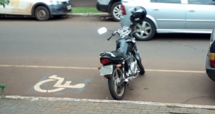 Moto estacionada em vaga para cadeirante na av. Irmãos Pereira, em frente à Previscam.