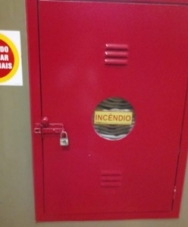 Em caso de incêndio, será que vai dar tempo de achar a chave do cadeado? A foto é da rodoviária de Campo Mourão.