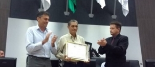 Sessão da Câmara de Campo Mourão sem homenagem não é sessão da Câmara de Campo Mourão. Nesta terça-feira teve entrega de moção a Dirceu Antõnio de Almeida. Ele é empresário, líder comunitário do Lar Paraná e assíduo frequentador das sessões da Câmara. "Em 99% das reuniões lá está o seo Dirceu", frisou o vereador autor da homenagem, Miguel Ribeiro, que entregou a moção junto com o vice-prefeito Beto Voidelo.