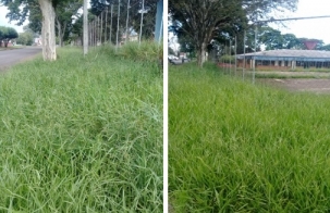 "Situação das calçadas,que foram tomadas por grama e matos em todo o quarteirão do Centro Social Urbano, no jardim Laura, em Campo Mourão. Inclui a velha quadra de esportes do CSU, que também foi tomada pelo mato. Devido ao mato e entulhos jogados nesses locais percebemos que aumentou e muito a proliferação de moscas, pernilongos, grilos e demais insetos".