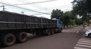Carreta passa pela av. José Custódio de Oliveira, no centro de Campo Mourão.