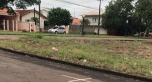 "Pode uma esquina inteira sem calçada? Av. Jorge Walter com rua Mato Grosso. E o pedestre, passa onde?"