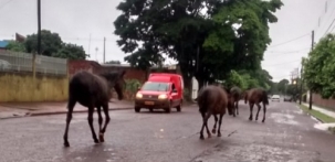 "Tá achando que é só nos EUA que tem Mustang? Aqui no Lar Paraná também. Cinco cavalos foram vistos passeando pela Rua das Palmeiras (Nelson Bittencourt Prado), nesta terça-feira pela manhã".