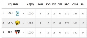 Os paulistas estrearam depois dos mourãoenses e também venceram as duas partidas disputadas.