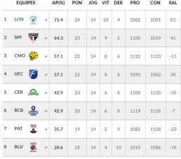 A segunda colocação foi para o São Paulo, que venceu Pato Branco.