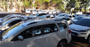 Praça São José superlotada de carrros e caminhões novos. Não é nenhum feirão, não. É a frota de veículos financiados pela prefeitura de Campo Mourão. Ao todo são R$ 8,9 milhões. A entrega oficial será neste sábado (10h), com a presença do prefeito Tauillo Tezelli.