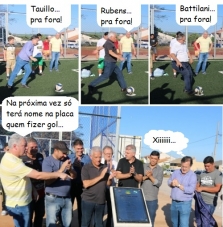 Olha aí mais cliques da inauguração da mini-aena multiuso do jardim América, em Campo Mourão. Foi no´sábado. Teve placa e tudo mais. E cobranças de pênaltis. Nas fotos, o deputado Douglas Fabricio observa as cobranças do prefeito Tauillo Tezelli, do deputadeo federal Rubens Bueno e do vereador Edson Battilani.