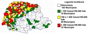 O município aparece com 290 casos confirmados, ou seja, passou dos 300 por 100 mil habitantes.