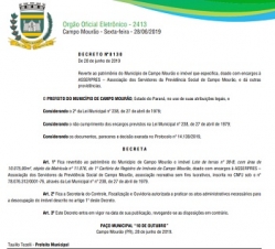 O prefeito Tauillo Tezelli assinou mais um decreto que retoma imóvel doado pela prefeitura por perda de finalidade.