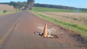 "Trecho da rodovia que liga Araruna a Peabiru. De tanto os usuários reclamarem dá só uma olhada na solução absurda que arranjaram para os buracos..."