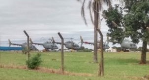 Cinco helicópteros da Marinha no aeroporto de Campo Mourão, nesta quinta-feira.