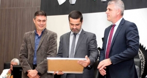A Câmara de Campo Mourão entregou nesta terça-feira a Comenda 10 de Outubro para a empresa Marujo Sport. O sócio Alcir Rodrigues da Silva recebeu a homenagem das mãos do vice-prefeito Beto Voidelo e do vereador-autor, Edilson Martins. A loja foi criada em Campo Mourão em 2001 e hoje tem filiais em Cascavel e Toledo. Ivone Nazari é a outra sócia. Nove vereadores participaram da sessão solene.