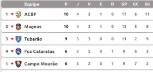 Campo Mourão está em quinto lugar e vem de duas vitórias.
