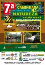 Acontece neste domingo (8h) a Caminhada Internacional na Natureza de Campo Mourão. É o 7.o Circuito Salto Boicotó. São 12 km entre trilhas e estradas rurais. A participação é gratuita, mas existem opcionais de café da manhã (R$ 10) e almoço (R$ 20). A promoção é da Emater da prefeitura.