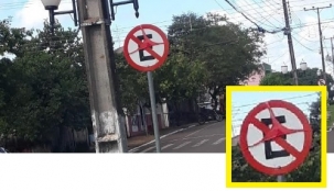 Alguém perdeu uma calcinha vermelha em Altamira do Paraná. A peça foi vista nesta segunda-feira "vestindo" uma placa de trânsto.