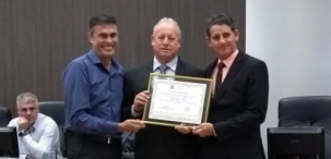 Sessão da Câmara de Campo Mouão sem homenagem não é sessão da Câmara de Campo Mourão. Nesta terça-feira, por exemplo, teve entrega de moção ao empresário Òvídio Santos Moreira, da Ovídio Pneus. Ele recebeu a homenagem do vereador autor, Jadir Pepita, e do vice-prefeito Beto Voidelo. Detalhe: entrega com plenário lotado.