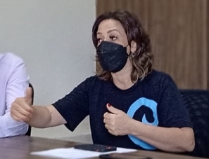 Edilaine de Castro, da Associação Sou Arte, se emocionando ao falar sobre a não realização, este ano, do projeto cultural Campo Mourão Cidade Natal, devido à burocracia do governo federal; nesta sexta-feira, em entrevista coletiva.