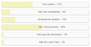 "Você é a favor do "passaporte da vacina" em sua cidade?". Enquete com essa pergunta foi encerrada neste domingo. Vitória da alternativa "Não. Seria paranoia", com 40% dos votos. "Com certeza" teve 31% e "Já deveria ter adotado" 14%. A alternativa "Não vejo necessidade" ficou com 9%. O resultado completo está no quadro acima.