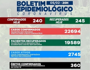 Duzentos e quarenta casos de covid-19 foram confirmados neste sábado em Campo Mourão (na sexta foram 290). Os recuperado foram 245 e o número de casos ativo ficou em 2.745. A ala covid está com 16 pessoas internadas. São nove na enfermaria e sete na unidade de terapia intensiva (dois de Campo Mourão e cinco de cidades da região).