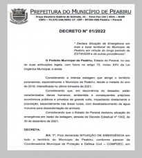A prefeitura de Peabiru decretou situação de emergêcia por causa da estiagem.