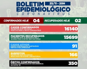 Quatro casos de covid-19 foram confirmados nesta quinta-feira em Campo Mourão. Os recuperados foram dois e o número de casos ativos ficou em 91. Também foi confirmada a segunda morte deste mês (homem de 84 anos). Na ala covid há oito pacientes internados, sendo cinco na unidade de terapia intensiva.