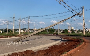 Poste que ficava no meio da rua (em construção), atrás da Santa Casa, foi derrubado por um carro na tarde de sábado. Foto: Vander Dissenha
