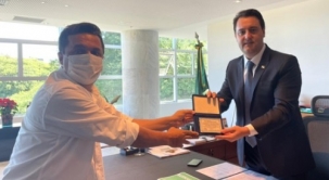 O prefeito de Goioerê, Betinho Lima, entregou nesta terça-feira uma placa de "reconhecimento e gratidão" ao governador Ratinho Jr. A iniciativa foi do Núcleo Regional de Educação de Goioerê pela implantação dos colégios cívico-militares na região. Lima recebeu a placa do NRE e levou ao governador. Antes de se tornar prefeito, Betinho era assessor de Ratinho Jr no Palácio Iguaçu.