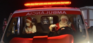 O "bom velhinho" apareceu dirigindo uma ambulância novinha.