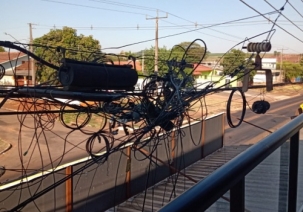 Olha o descaso. Empresa que se diz nota 10 retira o poste e deixa essa bagunça em frente a sacada. Rua araruna, 2244.