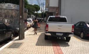 Camionete estacionada sobre a calçada, sobre a piso podotável, no centro de Campo Mourão.