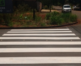 Faixa recém pintada na rua Lúcido Rodrigues dos Santos, na vila Cândida. De que adianta se não tem calçada e o passeio está cheio de mato? O pedestre passa por onde? Desperdício de material e mão-de-obra...