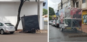 Não bastasse o problema crônico da falta de vagas para estacionar no centro de Campo Mourão, os carros ainda precisam competir com trailers de lanches, que nem funcionam durante o dia.