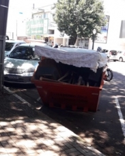 Quem disse que é difícil achar vaga para estacionar no centro de Campo Mourão? As caçambas de entulho acham...