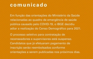 Motivo? O Censo foi adiado para 2021 por causa do coronavírus.