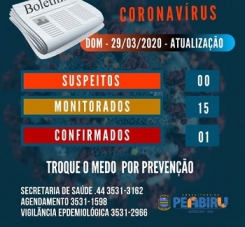 A prefeitura confirmou neste domingo o primeiro caso de coronavírus em Peabiru. O município não tem nenhum outro caso suspeito, mas há 15 sendo monitorados. Agora são quatro as confirmações de Covid-19 na região. As outras três são em Campo Mourão (2) e Iretama. "Pedimos a todos munícipes que se possível fiquem em casa. A melhor e maior prevenção é o isolamento social", alerta a prefeitura peabiruense.