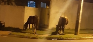 Cavalos soltos pastando em pleno domingo, por volta das 20h, no conjunto Fortunato Perdoncini. Um perigo passar um carro ou moto e bater.